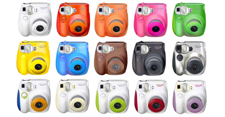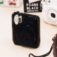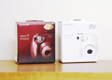 それで、その女の子に会社に来てもらって、チェキの開発にかかわった人たちと小ミーティングをしたんです。そしたら、僕たちにしたら一番安い機種のinstax mini7にものすごく反応してくれて、ぼこっとしたカタチだとか、フィルムを入れるところの蓋を開けると中がジャバラになってたりとか、そういうアナログ感ががいいって。さらに露出を調整するお天気マークをそのとおりに使わずに、わざと露出オーバーにしてハイキーな写真にしてたりとか、そういう使い方ができるんだっていう話でもりあがった。で、ちょうど、翌年がチェキの10周年でもあったんで、mini7の色を変えて何かできないかな? って。 |